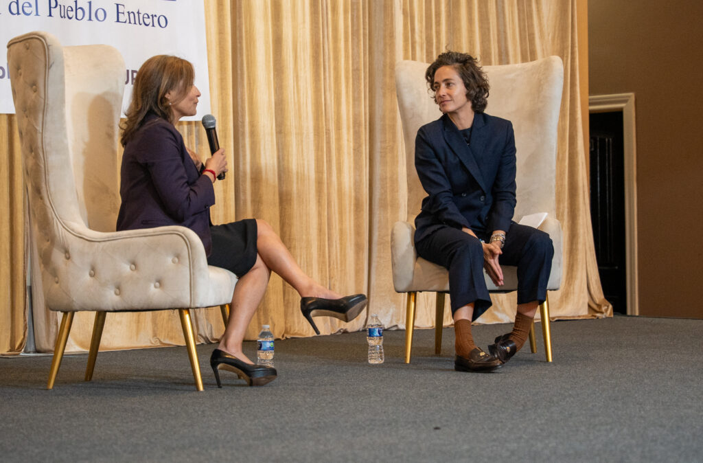 The evening was opened by the vibrant sounds of mariachi by La Mera, Mera, Orfy, whose music filled the room with joy and music that reflected upon our culture, and reminded us of the deep roots that sustain our movement. Later, we were joined by none other than Paola Ramos, an advocate of their community and Emmy award-winning journalist, who took the stage to deliver powerful keynotes centered on the power of endurance and the heart of the Rio Grande Valley families. Her remarks were followed by a thoughtful conversation with Presidential Fellow at Chapman University in Southern California, Julie Chavez Rodriguez, an advocate and political consultant who is also the granddaughter of the United Farm Workers leader Cesar Chavez, about the importance of staying united as we confront the political challenges that we are enduring under the current presidential administration.
